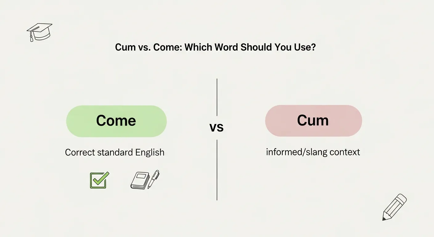 Use “come” for correct standard English ✍️, while “cum” is informal slang and should be avoided in formal writing ⚠️.