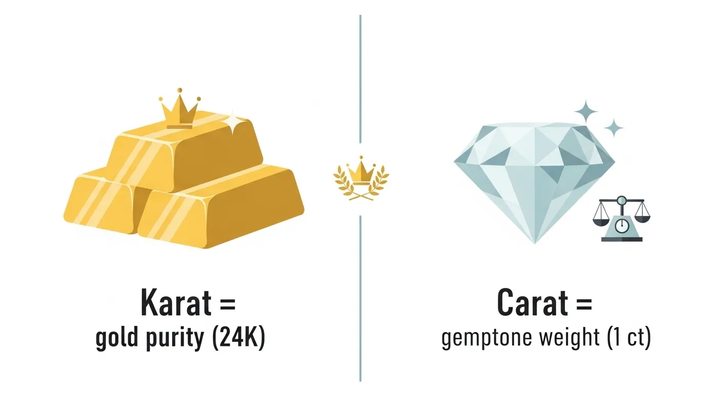 💎 Karat measures gold purity, while carat measures the weight of diamonds and gemstones.
