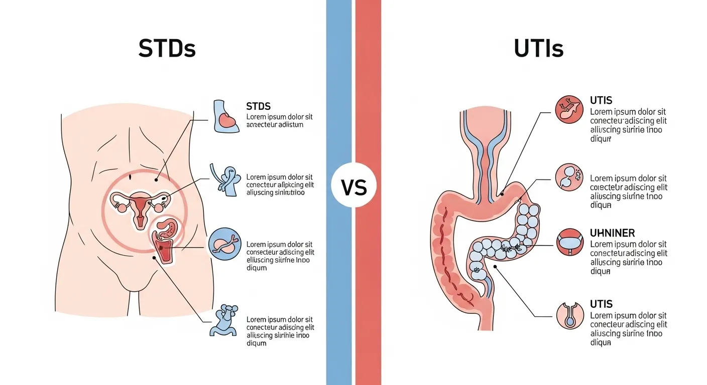 The difference between STD or UTI matters because treatment, causes, and risks are not the same. STDs are passed through sexual contact and may need partner treatment. UTIs are common infections of the urinary system and are not sexually transmitted. While symptoms can overlap, testing is the only way to know for sure.